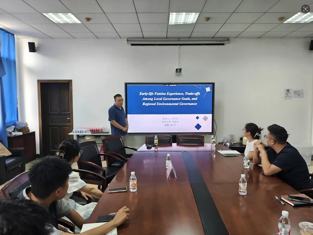 白彩全老师分享了其近期的研究成果:“Early-life Famine Experience, Trade-offs Among Local Governance Goals and Regional Environmental Performance”。论文聚焦于探究地方官员早期生活经历与其面临的多目标政策决策的关系,从而进一步分析对其治下的地方经济、民生、环境的影响。白彩全老师从研究动机、理论设计、研究贡献、实证分析、研究结论等方面详细分享了自己的研究成果。