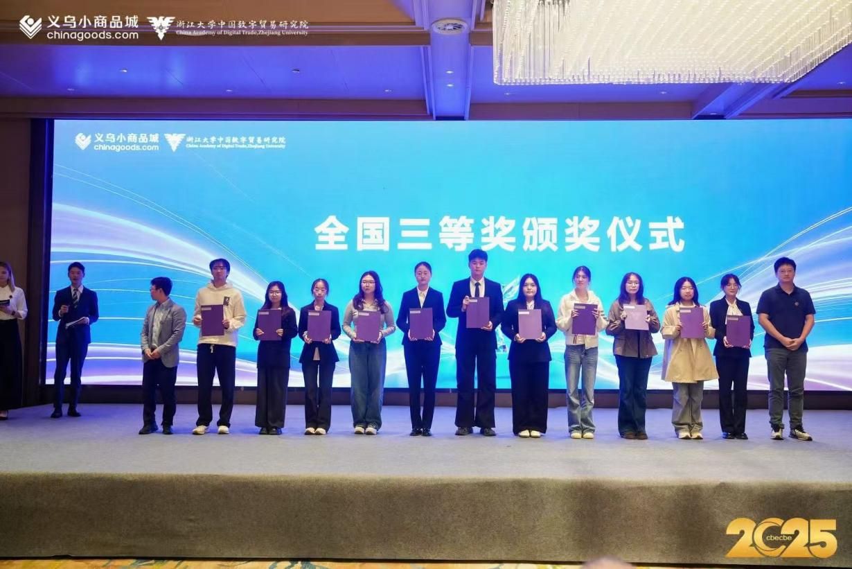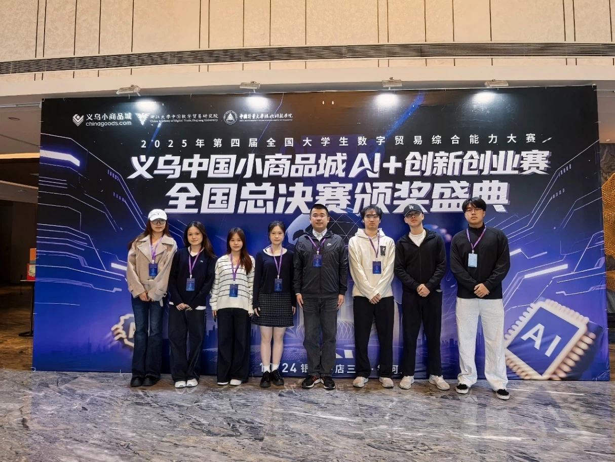 2025年9月27日至28日、10月23日至24日,第四届全国大学生数字贸易综合技能大赛迎来了全国总决赛。本次大赛共设4个竞赛模块,分别是1688大学生AI创业赛、义乌小商品城AI +创新创业赛、尼奥尼跨境直播赛和丝路电商来华留学生案例赛,分别在浙江大学紫金港校区、中国计量大学和义乌小商品城等地展开。该项赛事自创办以来,已经走过了四年的历程,赛事影响力持续扩大,已然成为极具影响力的全国性品牌赛事,累计吸引1213所高校、6万余名师生参与。自赛事启动以来,共吸引全国309所高校、2279支团队踊跃参与,最终276支优秀团队晋级全国总决赛。中国av 杨波教授、潘安教授,以及张亮、张群、舒中桥、黄晓琪等多位老师全程指导参赛团队。最终中国av团队取得了优异成绩,斩获了二等奖1项和三等奖3项。杨波教授、舒中桥老师荣获优秀指导教师奖。