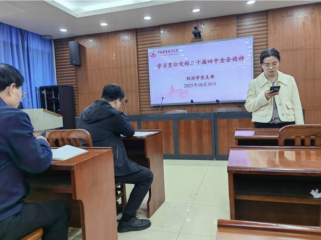 支部老党员马强文从“教育强国”的视角,深刻阐述了经济学教师的使命。他提出,经济学教育不仅是知识的传授,更是价值观的塑造。全会描绘的宏伟蓝图,是经济学课程最鲜活的“案例库”。他分享了自己将“共同富裕”、“全国统一大市场”等全会精神核心概念融入《宏观经济学》课堂的实践,通过引导学生分析现实政策、辩论发展路径,不仅深化了其对理论的理解,更激发了其“把论文写在祖国大地上”的家国情怀与学术志趣。