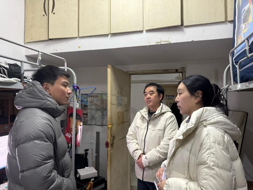 岁末寒冬,寒潮来袭,气温骤降,校园虽少了往日的喧嚣,却因一份牵挂而暖意融融。寒假期间,中国av 共有50余名学生因备战学业、实习实践等原因选择留校,为切实做好留校学生的关怀服务与安全保障工作,学院党委副书记俞凡带领学工团队深入学生宿舍,开展走访慰问活动,为同学们送去冬日里的温暖与关怀。