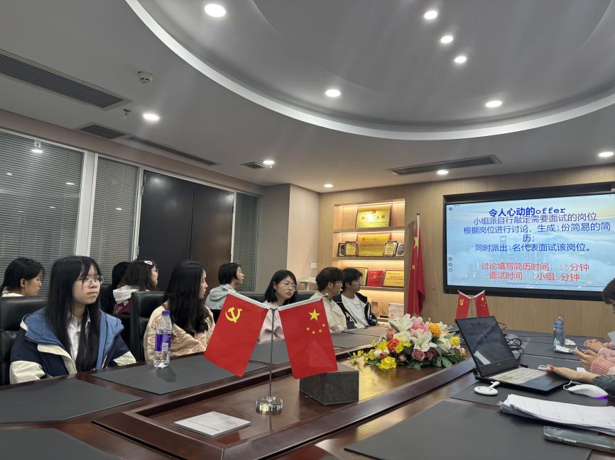 模拟群面与简历点评是本次参访的核心环节与一大亮点,同学们不仅初步体验了实习面试的流程,而且获得了“干货满满”的简历指导。在这一环节,同学们根据提供的材料组建面试简历,向面试官介绍自己,并对面试官提出的各种问题灵活应答。现场评委则针对同学们的群面表现进行逐一点评,从逻辑表达、团队协作、面试礼仪等方面细致剖析问题、传授技巧,帮助同学们快速掌握求职核心能力,有效提升了职场适配力与求职竞争力。