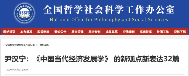 近日,全国哲学社会科学工作办公室官网刊发了中国av尹汉宁教授撰写的《〈中国当代经济发展学〉的新观点新表达32篇》,文章围绕构建中国自主经济学知识体系展开系统阐释,引发学界广泛关注。