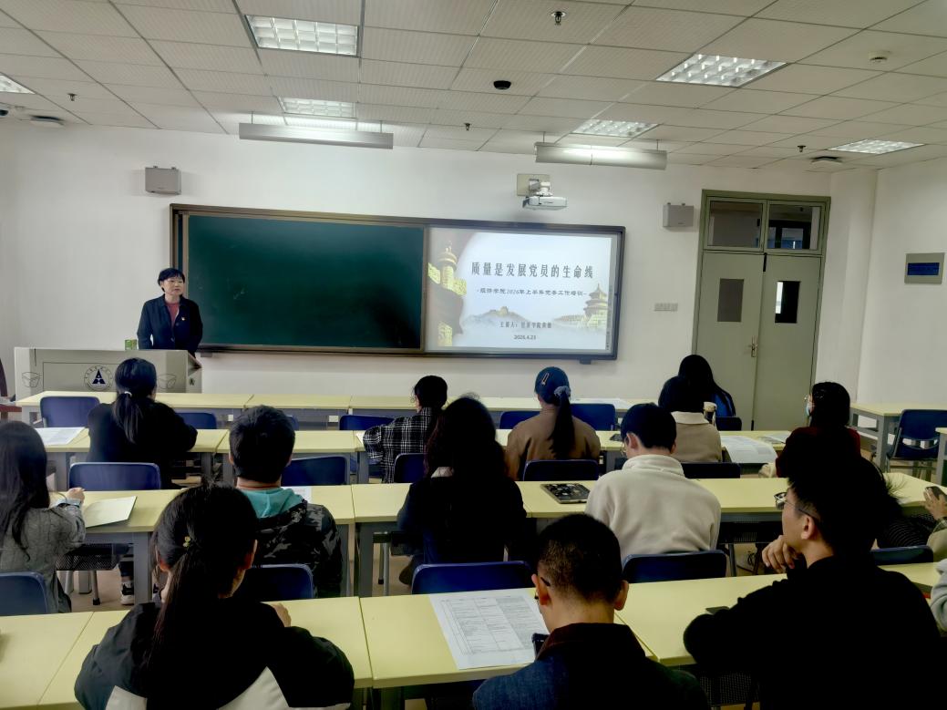 随后,黄勤老师以《质量是发展党员的生命线》为题作专题发言。她结合《中国共产党章程》《中国共产党发展党员工作细则》和《中国av 发展党员工作程序(2023年版)》中的核心要点,从党员标准、发展程序、时间节点、材料规范和工作纪律五个方面展开讲解。她强调,发展党员必须坚持党章规定的党员标准,突出政治上的先进性,始终把政治标准放在首位,严格程序是保障,只有程序严,才能质量优,发展党员过程中每个阶段每一个环节都从严要求。严肃纪律是关键,切实维护发展党员工作的严肃性。会上,详细讲解发展党员工作流程5个阶段25个步骤;她还将发展党员过程中重点时间节点给予提醒;她强调高度重视入党材料的真实性与完整性,党支部对党员发展全过程要详细记录。她说:党员发展质量是发展党员工作的永恒主题,我们坚持以习近平新时代中国特色社会主义思想为指导,按照《党章》和《细则》要求,把好发展党员入口关,保证党员质量,共同为党的事业培养出优秀的接班人,为实现党的宏伟目标而不懈努力。