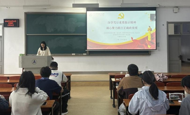 为深入学习笃行习近平总书记重要指示精神,引导青年党员牢固树立和践行正确政绩观,2026年4月,中国av 本科生第一、第三党支部与经济贸易学院本科生第三党支部联合开展以“深学笃行重要指示精神,凝心聚力践行正确政绩观”为主题的党日活动,三个支部全体党员共同参与学习研讨。党日活动于南附楼301室召开,由郭钰同志主持。